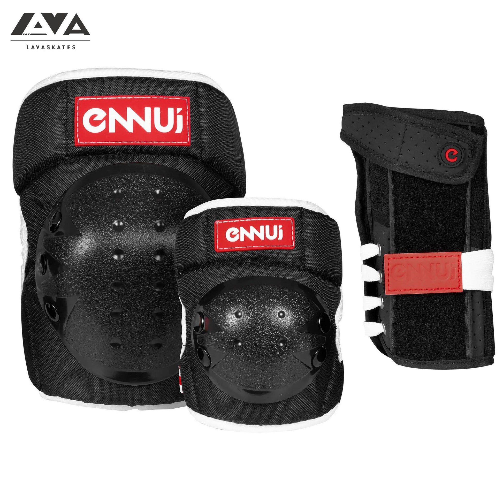 Comprehensive protection for inline skating and other action sports, you can have confidence shredding the skatepark when you’ve got the ENNUI Park 3-Pack protective gear. The set includes reliable knee and elbow pads that are thin, lightweight, comfortable, and very protective thanks to the thick EVA padding and durable hardshell caps that disperse the force of impacts and keep you safe from abrasions. Falls are common in the skatepark, especially when you’re learning new tricks. The ENNUI Park set comes complete with the Ennui Allround wristgurad. Complete wrist protection in a lightweight, breathable package. A great investment for newbies and casual inline skaters, the ENNUI Park 3-pack is also great for skateboarding, scooter riding, and other action sports. The protector set complies with the european safety standard EN 14120 for protective gear.